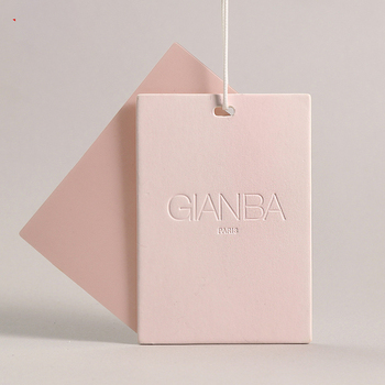 Etiqueta de logo en relieve para ropa, abrigo grueso de 800g, Papel kraft Rosa, con cordón de algodón
